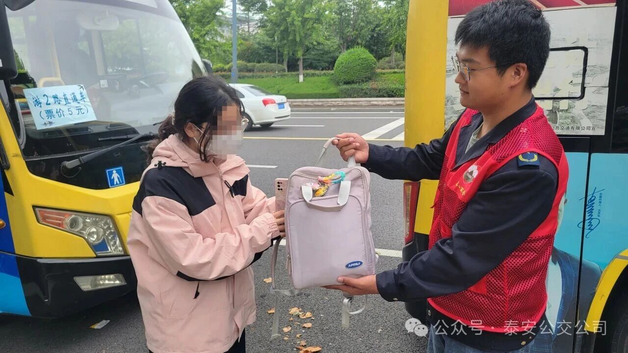 國慶假期第四天,來自新疆、在濟(jì)南上大學(xué)的阿依夏姑娘,與同學(xué)相約登泰山游玩,卻在下山返程時遭遇了一場 “小意外”——匆忙間,她將裝有身份證、學(xué)生證等重要證件的背包遺落在了游2路直通車的座位上。“當(dāng)時腦子一下就慌了,證件丟了不僅回不了濟(jì)南,后續(xù)辦事也會受影響。” 回憶起當(dāng)時的情景,阿依夏仍難掩焦急。情急之下,她想到了向泰安公交第六分公司求助,工作人員耐心傾聽她的情況,詳細(xì)記錄下乘車時間、下車地點以及背包的特征。