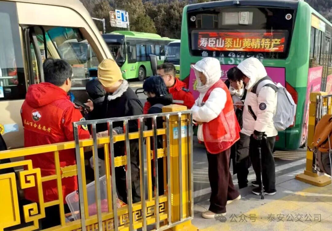 與此同時,天外村景區(qū)作為元旦假期客流高峰區(qū)域,游人如織。“泰山百合”志愿者們在天外村公交站點及周邊重點區(qū)域堅守崗位,全力開展志愿值守與便民服務。志愿者們精神飽滿地引導乘客有序排隊上下車,耐心解答公交線路、換乘路線、景點方向等咨詢,主動協(xié)助老人、兒童及攜帶行李的游客安全乘車,及時疏導站臺及周邊人流,有效避免擁堵。針對外地游客,志愿者們化身“活地圖”與“城市宣傳員”,熱情介紹泰山文化、推薦游覽路線,充分展現(xiàn)了泰安公交人及泰安市民的良好精神風貌與文明形象。