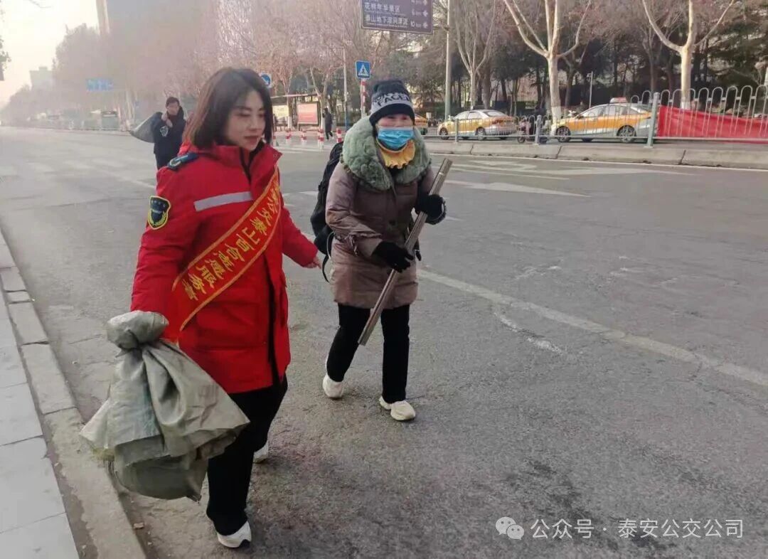 在小井公交樞紐附設(shè)站,身著紅色“泰山百合”馬甲、佩戴志愿服務綬帶的志愿者們迅速投入工作,有序開展便民服務。在公交車??繀^(qū)域,志愿者主動引導駕駛員規(guī)范進站、有序停靠,保障車輛進出站安全順暢;在候車區(qū)域,志愿者們耐心解答乘客出行咨詢,重點關(guān)注老年乘客等特殊群體,主動攙扶其上下車,細致講解上下車安全、扶手抓握、特殊天氣防護等乘車攻略。同時,志愿者們向過往市民發(fā)放綠色公交出行宣傳冊,積極倡導低碳環(huán)保、文明出行理念,為有換乘需求的乘客精準規(guī)劃最優(yōu)路線,用貼心指引讓寒冷冬日充滿溫情。